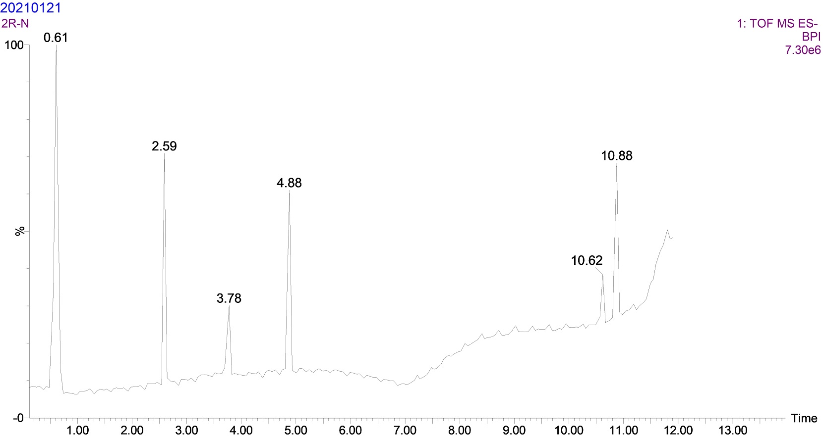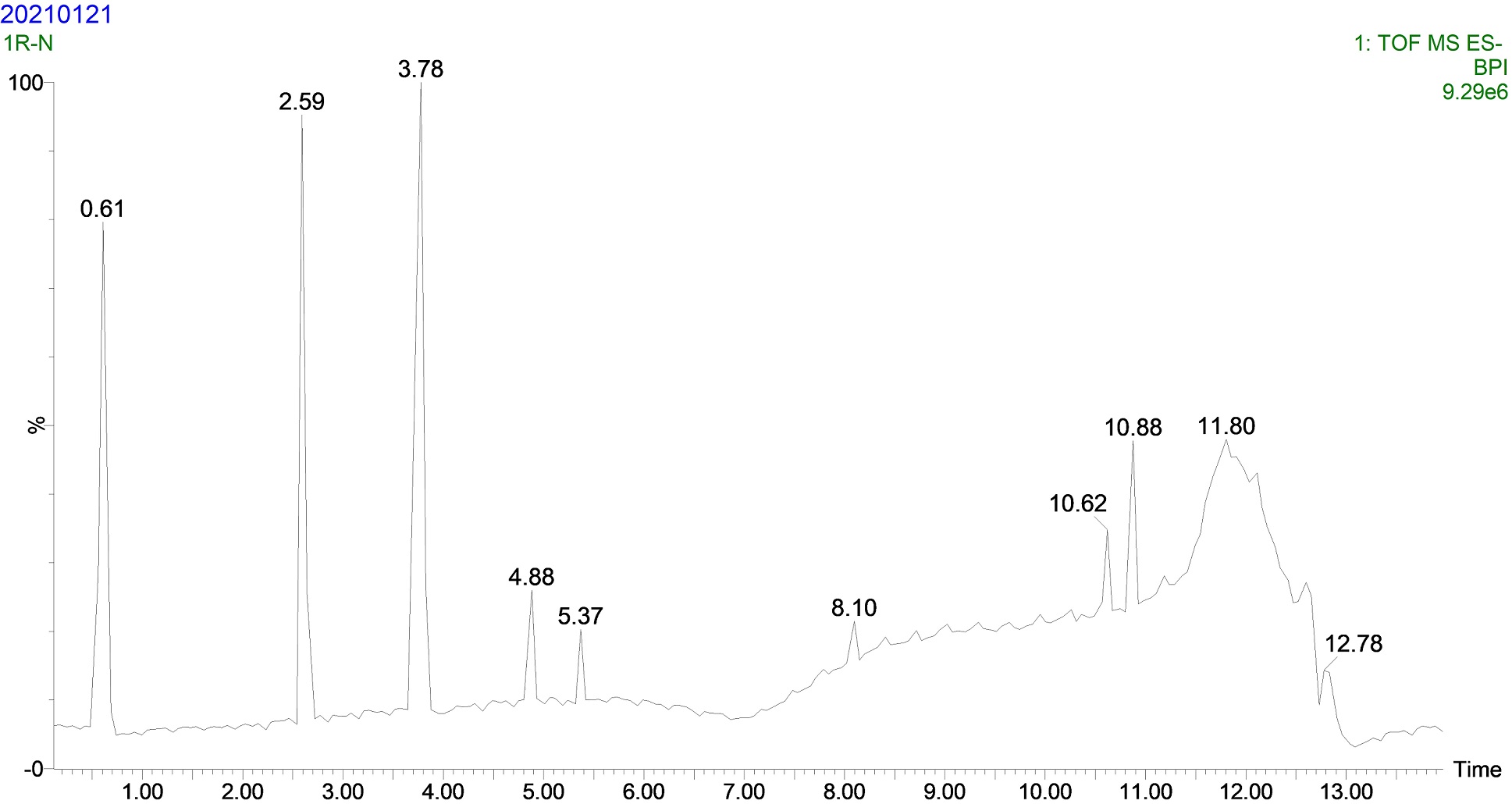 Figure 2 BPI total ion flow diagram of burdock kernel samples in the second period under negative ion mode