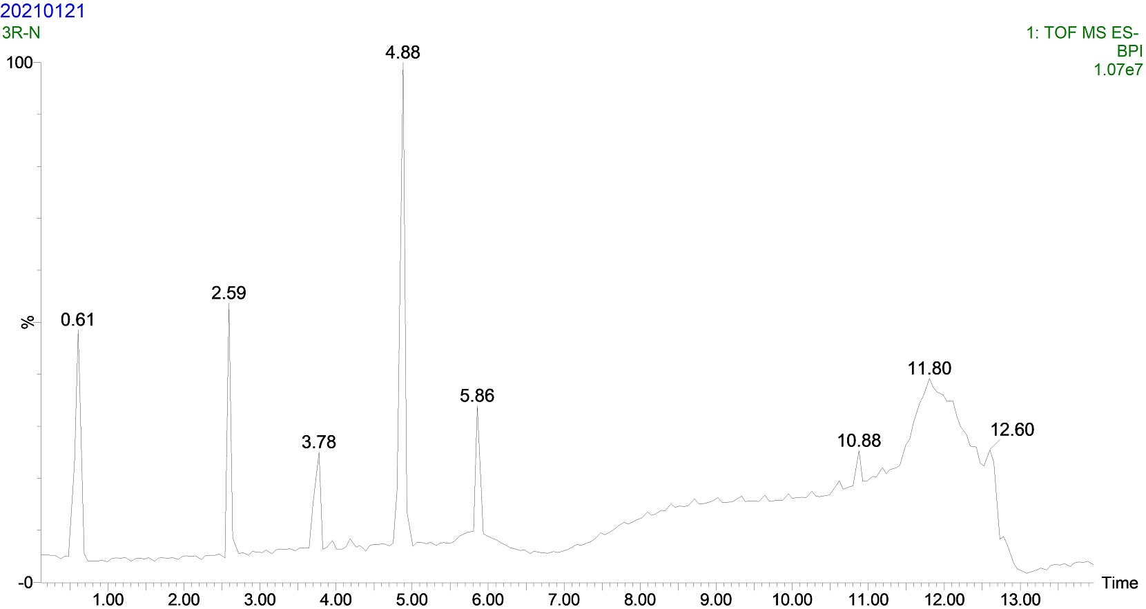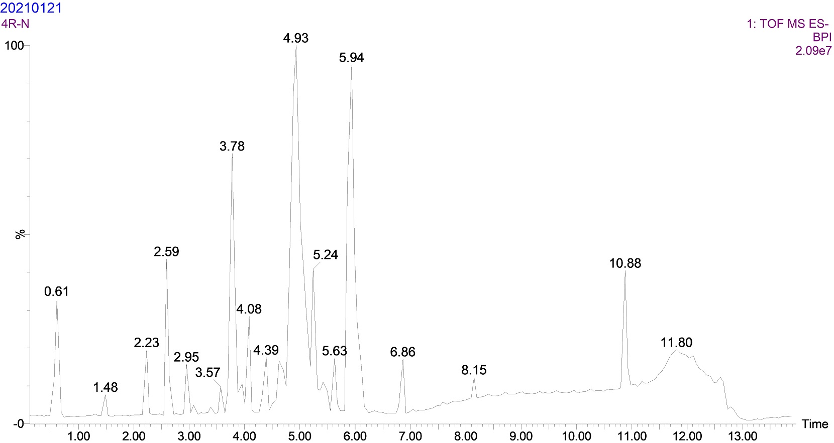 Figure 4 BPI total ion flow diagram of burdock kernel samples in the fourth period under negative ion mode