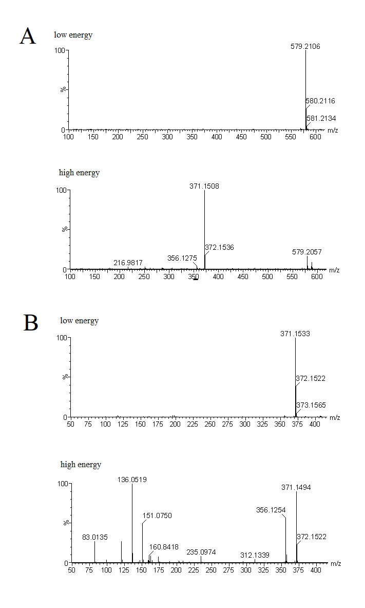 Identification of compound arctiin and arctigenin in anion mode low energy/high energy channel mass spectrometry