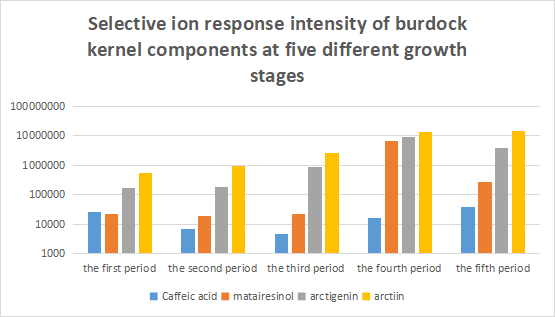 Selective ion response intensity of burdock kernel components at five different growth stages